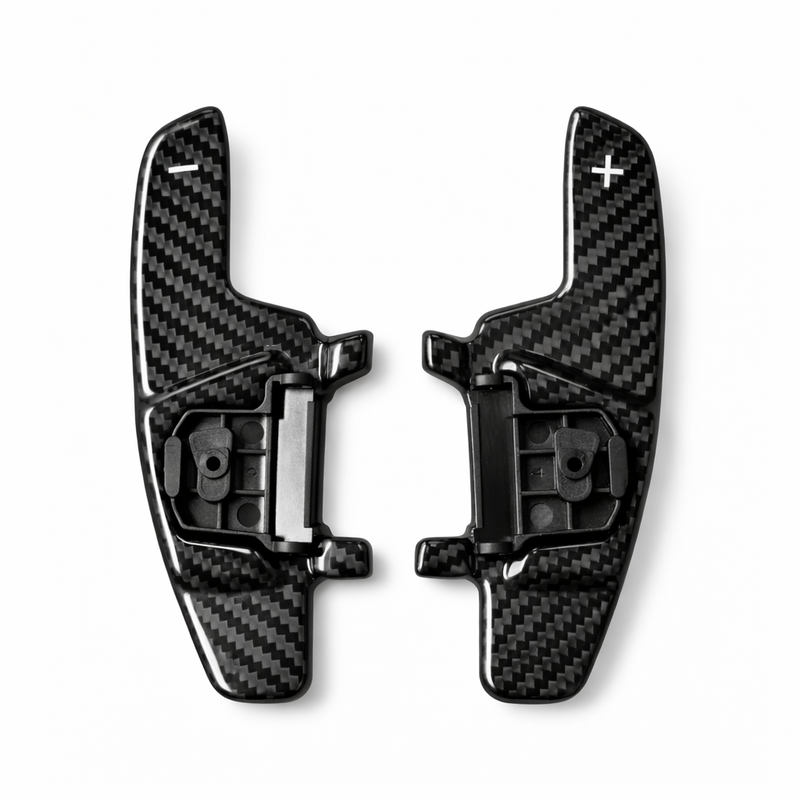 Hochwertige Schaltwippen für präzises Schalten. Lenkrad und Wippen in perfekter Harmonie.